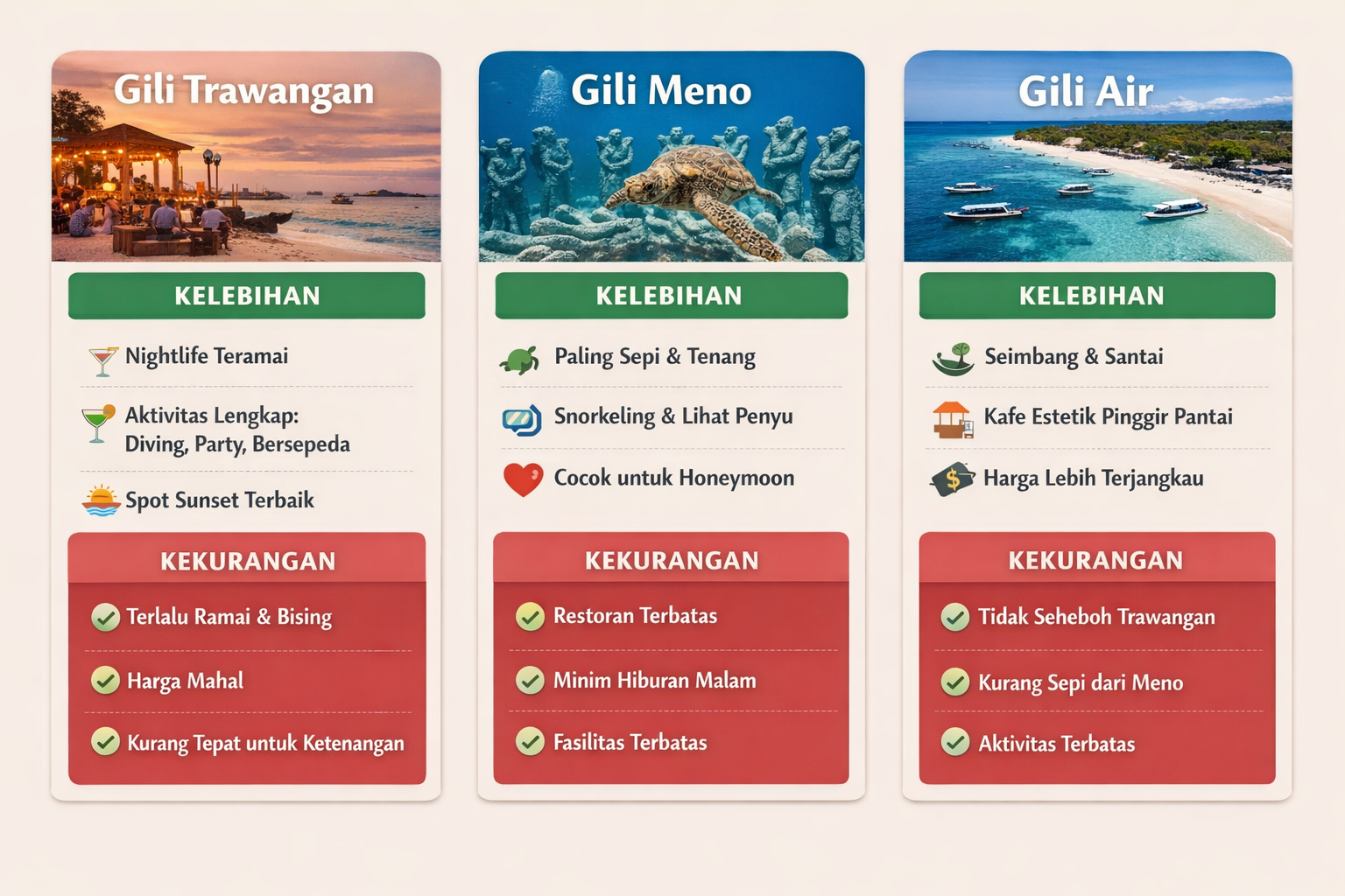 Mengunjungi ketiga gili dalam satu perjalanan akan memberikan pengalaman yang jauh lebih lengkap.