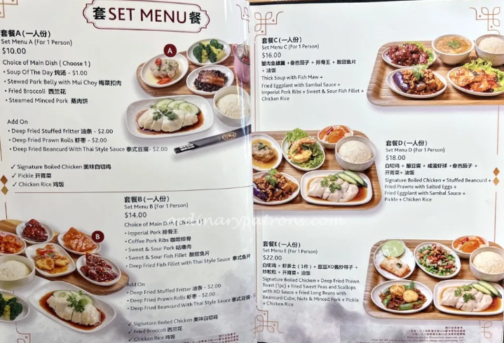 Ah Tai Hainanese Chicken Rice berlokasi di Maxwell Food Centre. Buka Rabu sampai Senin, jam 11.00 – 19.30. Dikutip dari Yelp ini menu dan harga di Ah Tai.