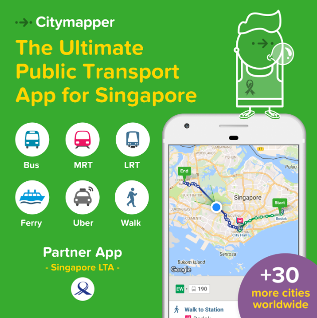 Citymapper adalah aplikasi transportasi terbaik di Singapura, yang menurut Lensa Jalan mengalahkan Google Maps dalam hal detail rute publik.